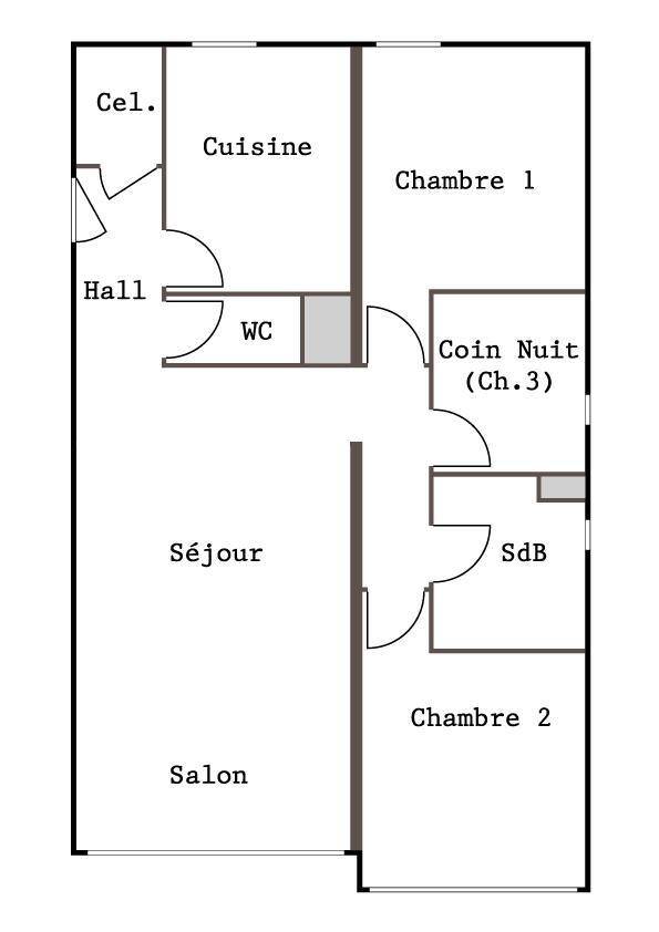 * 3 chambres (2 chambres avec lit de 140 et armoire + 1 coin nuit avec 2 lits de 140 superposés)